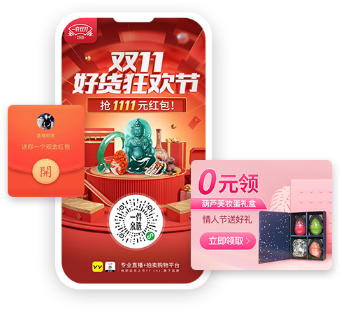 • 丰富多样的营销互动工具 0元购、红包、抽奖、秒杀一应俱全