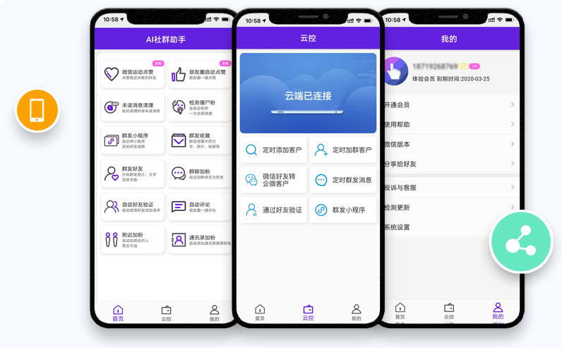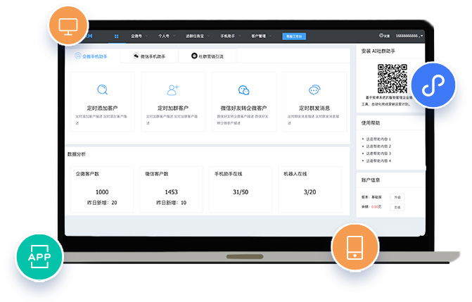 自动加好友,自动通过好友申请,自动拉进群,自动按标签群发等等,营销动作自动化运行