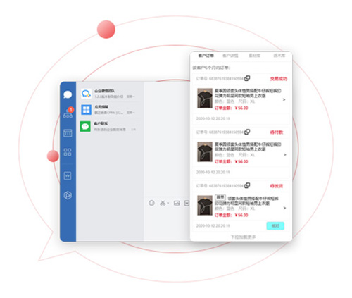 • 打通平台交易数据 客户聊天即时了解下单情况