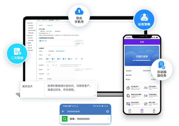 导入手机号,自动搜索添加。从以往成交客户中建立第一批种子用户,自动备注客户,自动打标签等智能添加方式,导入通讯录表格,任务自动运行,无需长时间开电脑。